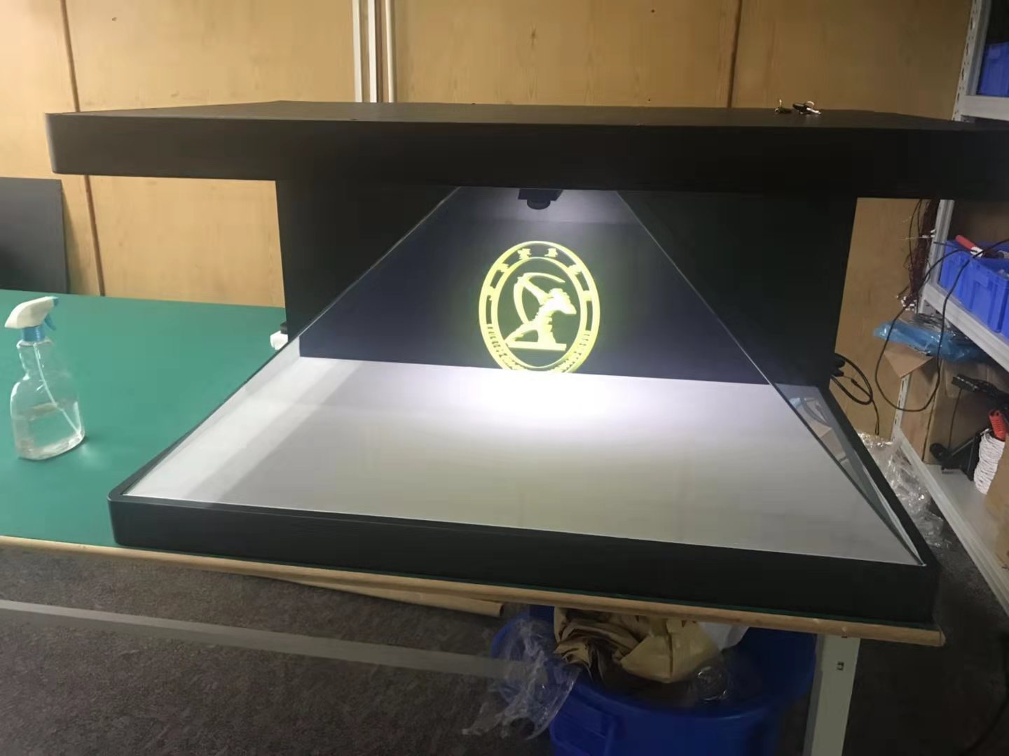 270度全息展示柜幻影成像系统是用一种将三维画面悬浮在柜体实景中的半空中成像系统